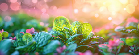 A close-up shot of illuminated plants with bokeh lights in a dark setting, creating a magical atmosphere.