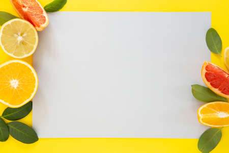 Summer background with an orange, lemon and grapefruit slices with copy space