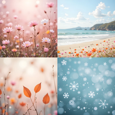 A charming collage of 16 images showcasing nature's beauty. cityscapes. and cozy moments. Perfect for adding a touch of warmth and tranquility to your designs.