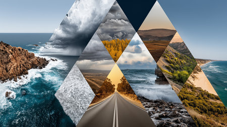 A collage of stylish and modern photos. perfect for decorating your home. office. or social media. This collection features various styles. from nature and cityscapes to minimalist abstract designs.