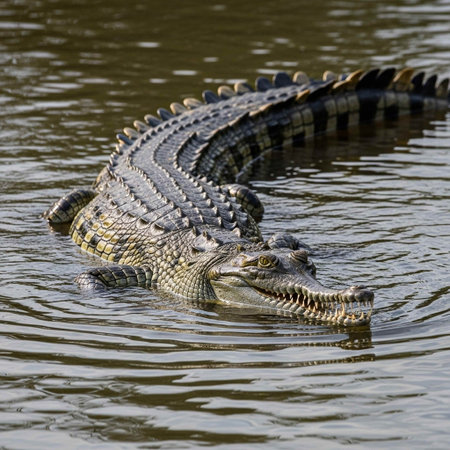 A scaly crocodile in the water.