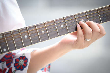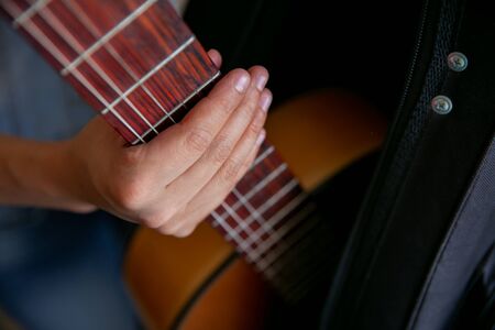 Close up beautiful woman playing acoustic guitar.woman's hands playing acoustic guitar