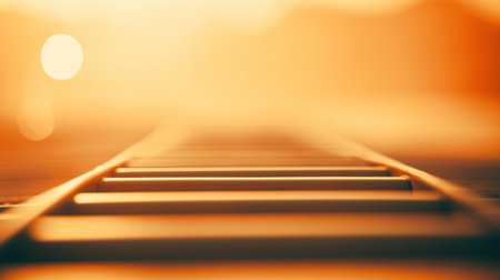 A railroad track with a bright light in the background, AI