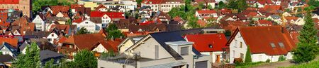 Cute village in Germany on a hillside, apartment buildings on the background of the forest