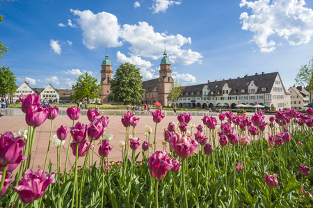 Schwarzwald. Freiburg im Breisgau. August 2017. Sights in the student old town Freiburg im Breisgau in spring in the southwest region of Germany in Black Forest