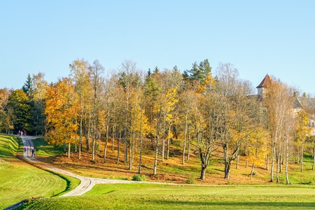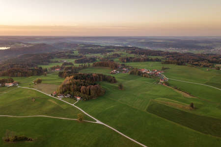Germany, Munich - September 06, 2013. View of the Bavarian rural valley from above. German lakes from above. Rural landscape in autumn.