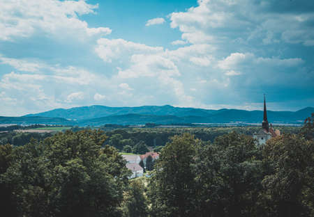 The village of Dolni Loucky in the Czech Republic - Europe. Large panorama of a rural landscape. Sunny summer day.