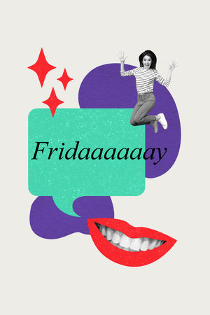 Creative abstract template collage of energetic happy excited female have fun party friday vibe smile mouth surrealism metaphor psychedelic