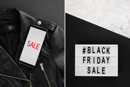Collage with promotion composition for Black friday sale. Shopping sale concept