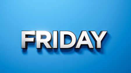 Friday 3d typography brushed Metal chrome letter on blue background 3d illustration