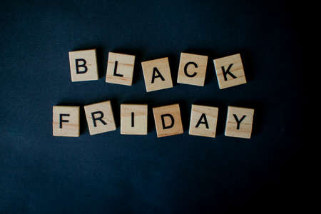 The inscription black friday from wooden blocks on a black background