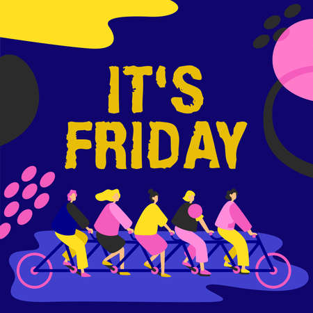 Text showing inspiration It S Friday. Concept meaning Last day of the working week Before Saturday or weekends Colleagues Riding Bicycle Representing Teamwork Successful Problem Solving.