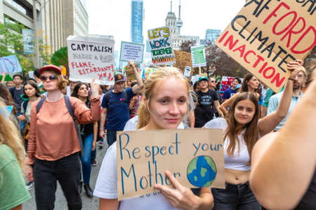 TORONTO, CANADA - SEPTEMBER 27, 2019: Global Strike for Climate and march for climate justice in Toronto, Ontario, Canada