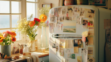 A white refrigerator with a brown paper on the door, AI