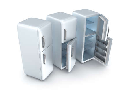 Refrigerator on a white background. 3d rendering. Computer digital drawing.