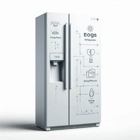Close up of digital numbers electronic display stainless steel smart refrigerator, modern technology, professional design, energy efficiency concept