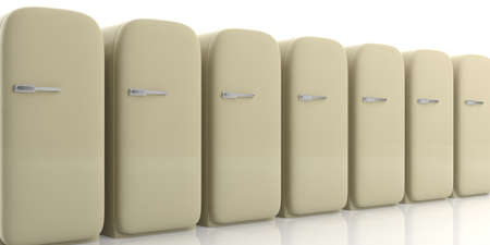 Refrigerators, home appliances. Vintage fridges on white background. 3d illustration