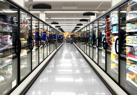Bangkok, Thailand - March 25, 2020: Empty shelf of frozen food in supermarket when the country was lockdown during a coronavirus pandemic in Bangkok, Thailand.