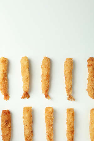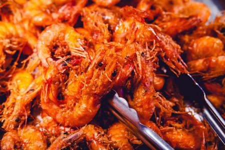Fried whole head-on shrimp breaded and crispy in buffet tray