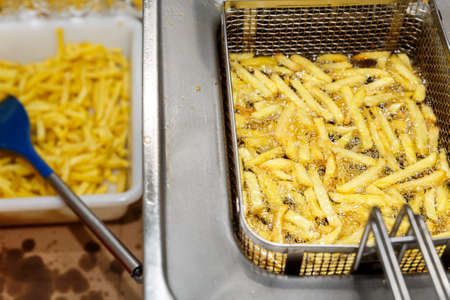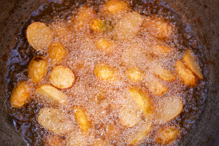 potatoes are fried in oil. Freshly cooked popular food. Side dish