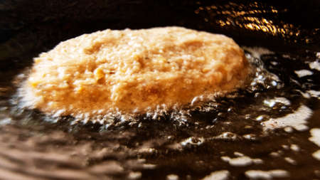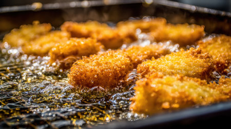 Delicious bites cook in hot oil bubbling and turning golden brown filling the air with savory aromas.