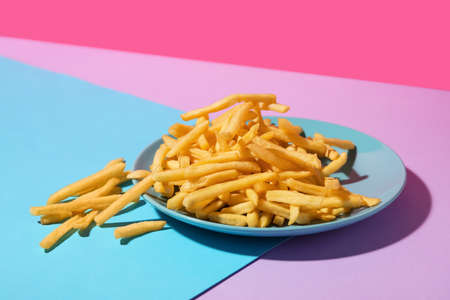 Fresh Potatoes Tasty french fries with ketchup fast food products