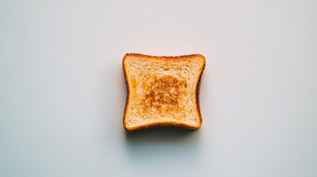 Pieces of toasted bread scattered naturally on a bright white surface, with golden-brown tones highlighted