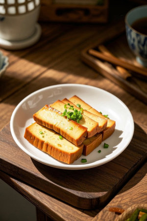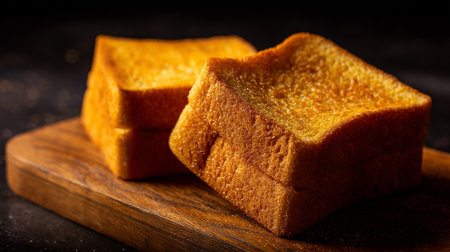 Golden Toast Squares on a Dark Surface, Breakfast Food Still Life