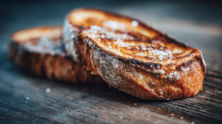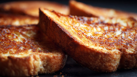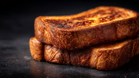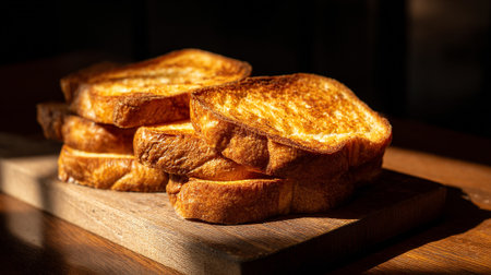 Golden brown toast stack on a dark wood surface ready for breakfast