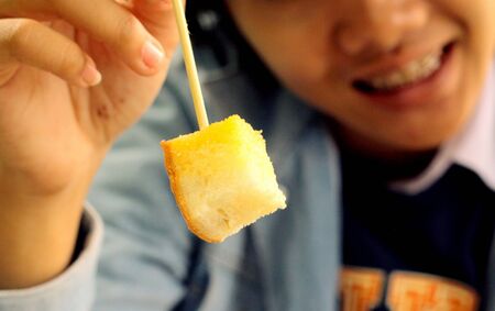 Fried bread. Food with a soft and chewy texture. Oily bread