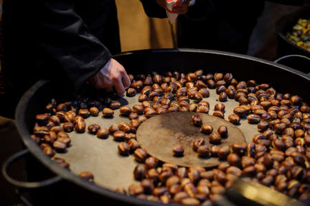 Fried chestnuts on the street. Street food. Roasted chestnuts