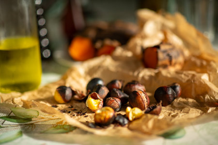 Delicious healthy chestnuts on a parchment paper