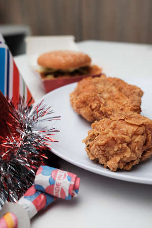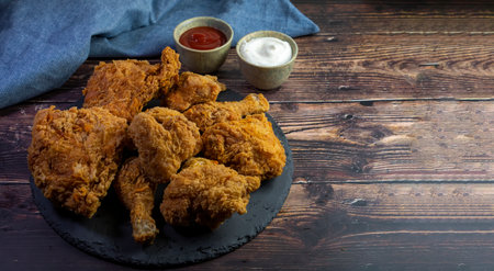 The American fried chicken close up image for food content.
