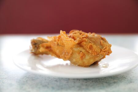Fried chicken leg on plate with chicken dipping sauce, crispy fried chicken in a table food