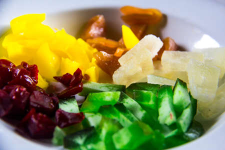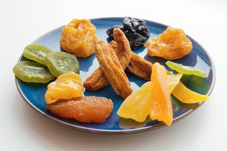 Selection of colorful dried fruits on a plate
