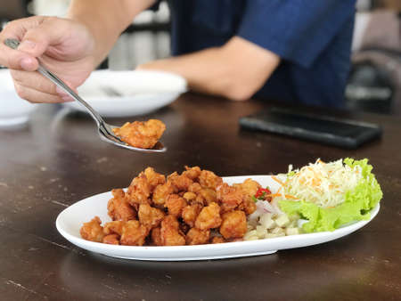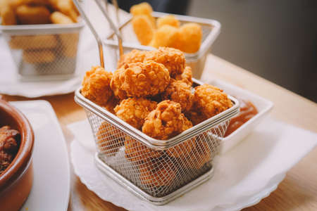 Picture of crispy breaded chicken tendons beautifully placed on dining tables in restaurants, food and travel.