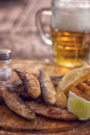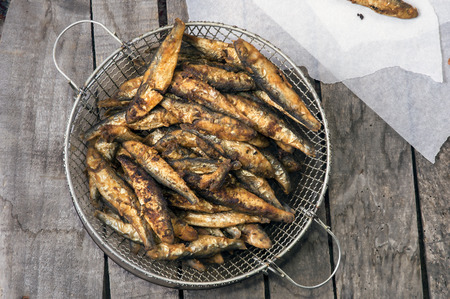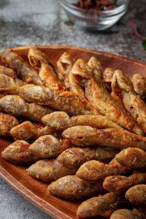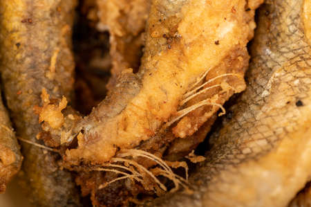 Small fried fish, surface texture, background image, close-up, selective focus
