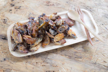 squid fried on wood tray, Thai food