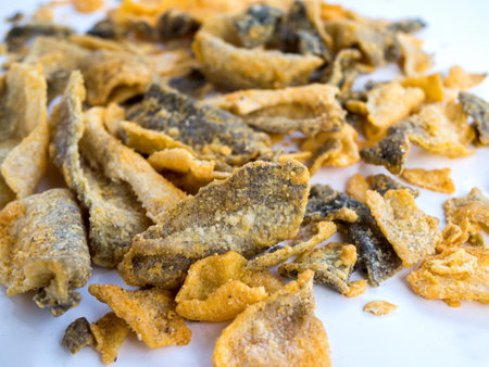 Crispy fish skin snack and used as an ingredient in Thai food.
