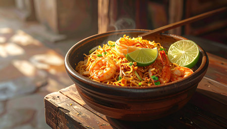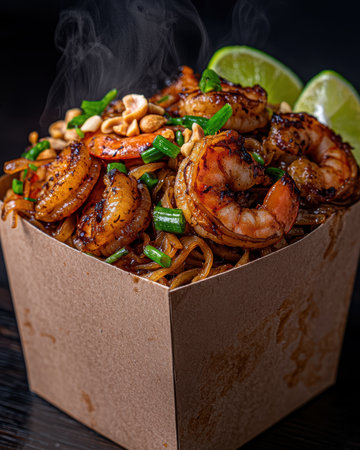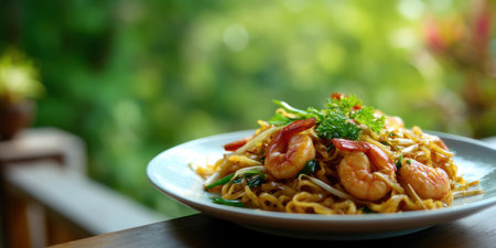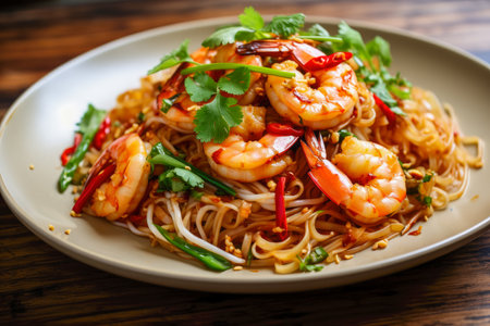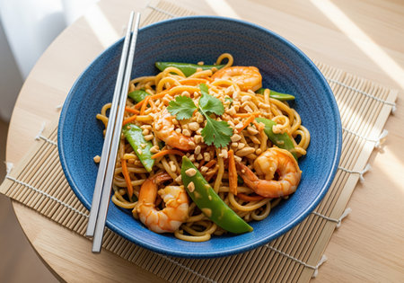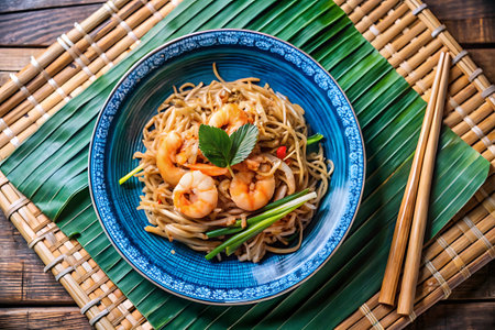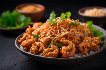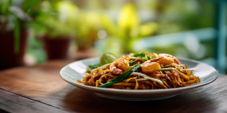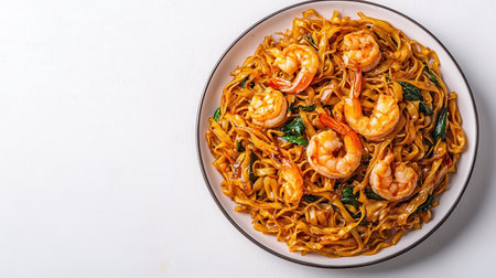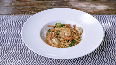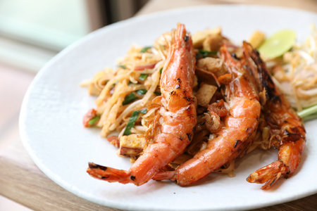 Thai Fried Noodles Pad Thai with shrimps or prawns