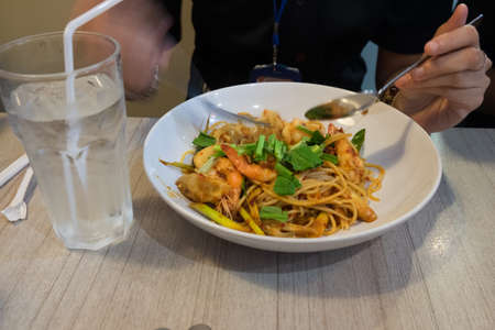 shrimp noodles or Fried noodles, Thai noodles or prawn noodles or shrimp pasta for serve