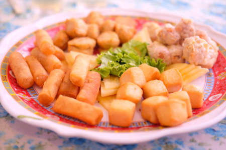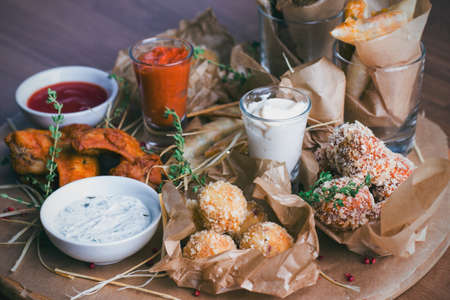 Cheese balls tempura, spicy chicken wings and various snacks