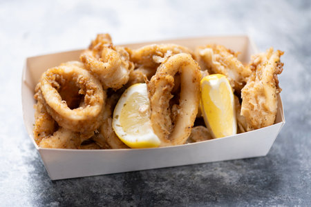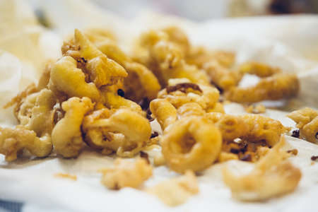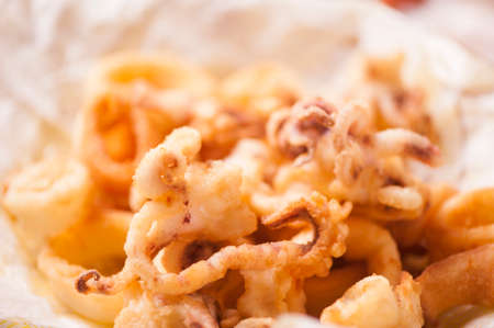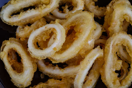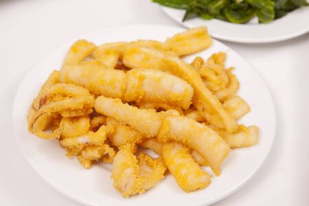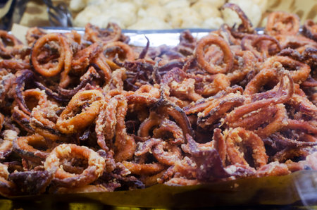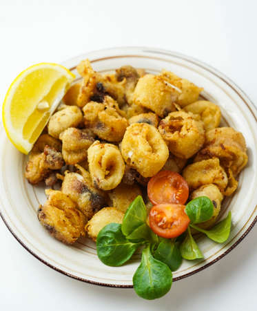 Roman squid. Battered squid, traditional Spanish tapa recipe.