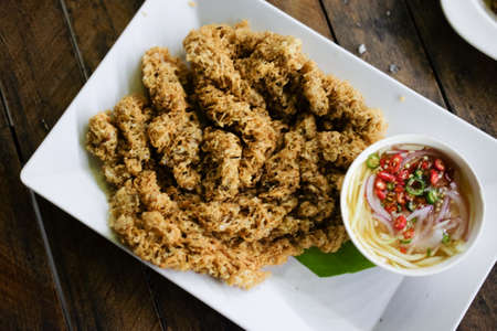 Crispy catfish and spicy sauce with vegetable The delicious Thai food