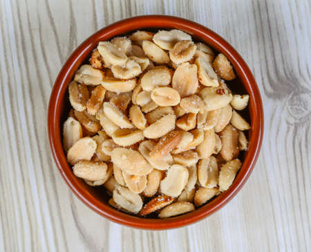 Salted peanuts on a wooden background. High quality photo