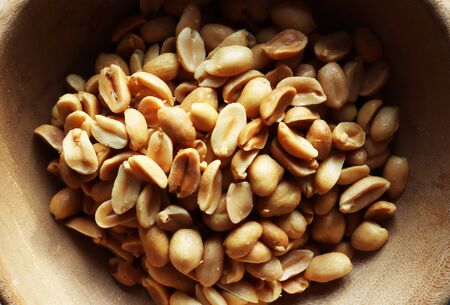 Photography of peanuts in a wooden bowl pattern for food background