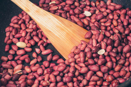 Preparation of peanuts as a source of vegetable protein. peanuts were fried in a frying pan close-up.