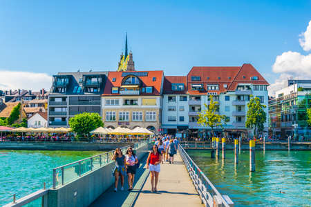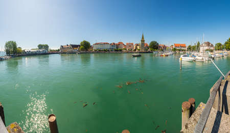 Lindau, Germany - July16: Picturesque port town Lindau on Lake Constance, on July 16, 2019 Lindau, Germany