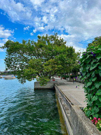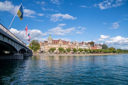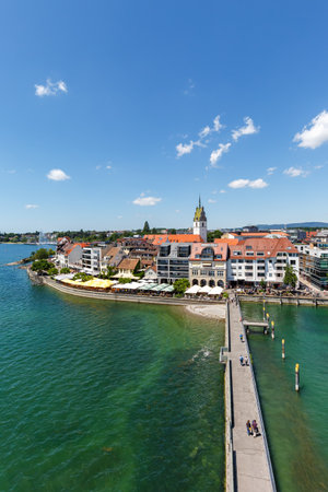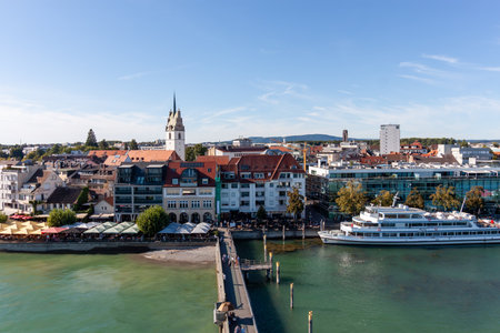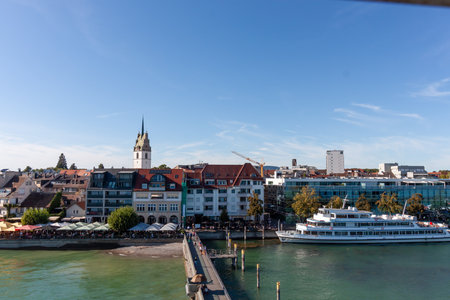 FRIEDRICHSHAVEN, GERMANY - SEPTEMBER 6, 2025: Scenic view of the waterfront promenade in Friedrichshafen on Lake Constance, Germany