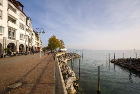 FRIEDRICHSHAFEN, GERMANY - OCTOBER 18, 2018. Promenade of the Bodensee lake. Town of Friedrichshafen, state of Baden-Wuerttemberg, Germany